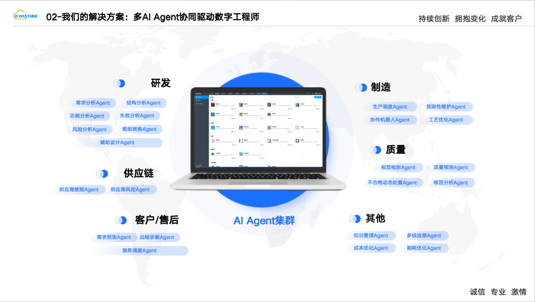 通过多AI Agent集群,数字工程师可以覆盖制造业多个核心业务场景。
