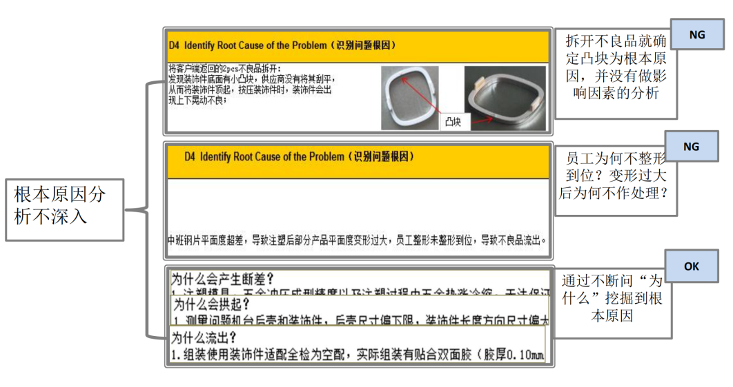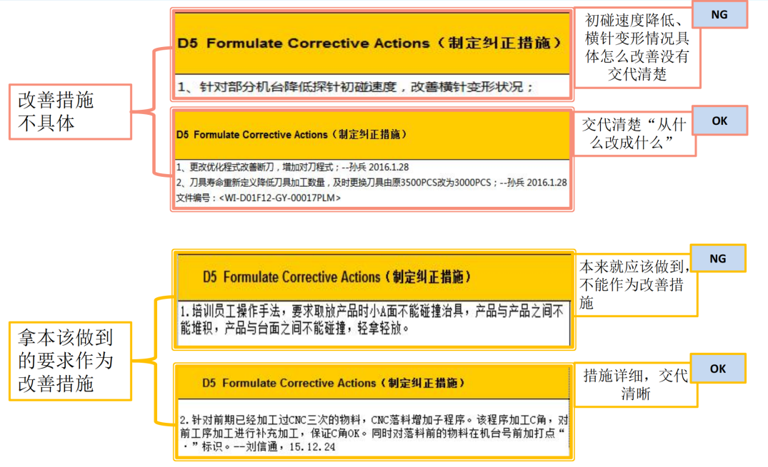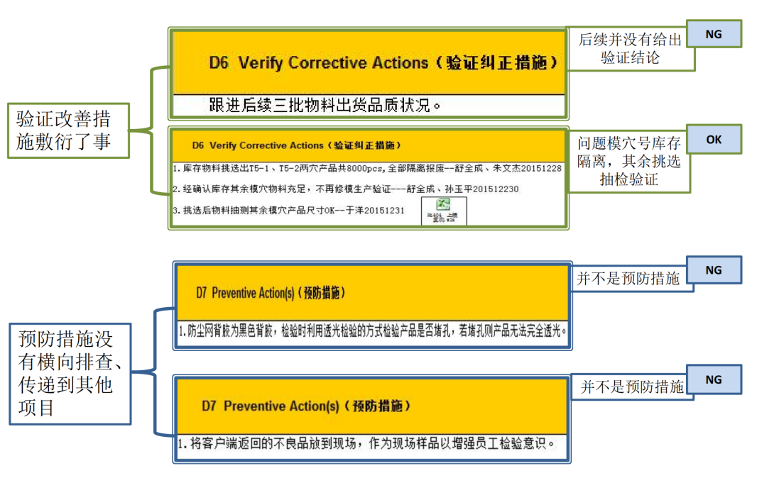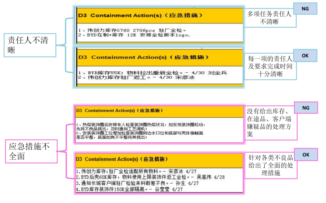 最后我们通过几个案例,对比8D各步骤优缺点,学习优秀的8D报告应该怎么写: