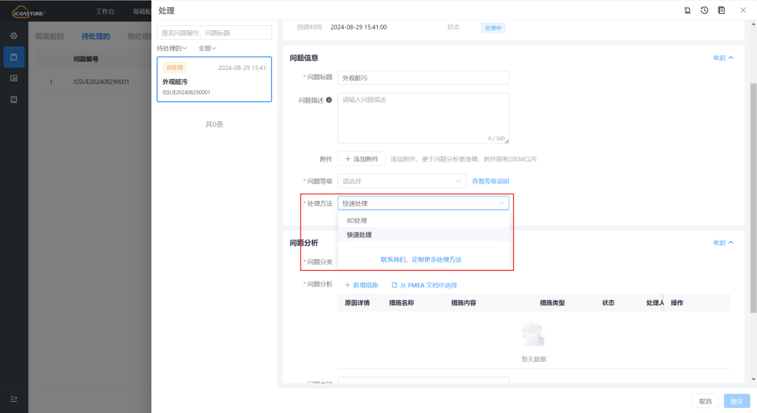 在对问题进行初步分析后,我们可以选择快速处理,或者8D分析等其他方式。