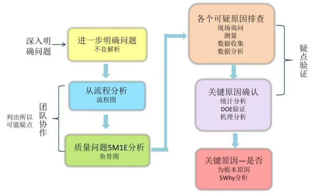 从5M1E入手分析,包含人(men)、机器(machine)、方法(method)、测量(measurement)、材料(material)、环境(environment),一步一步地进行详细说明。