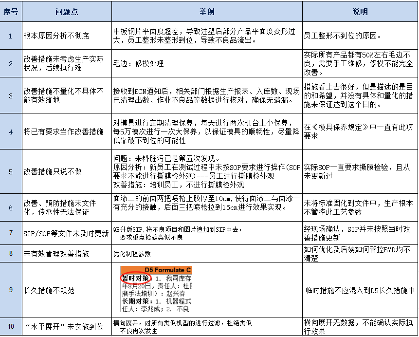 其它注意事项:改善措施是先执行后加入到8D报告中,必须保证执行的实现,不是空谈