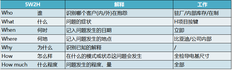 D2问题描述:5W1H,描述出现的问题详细全面化;