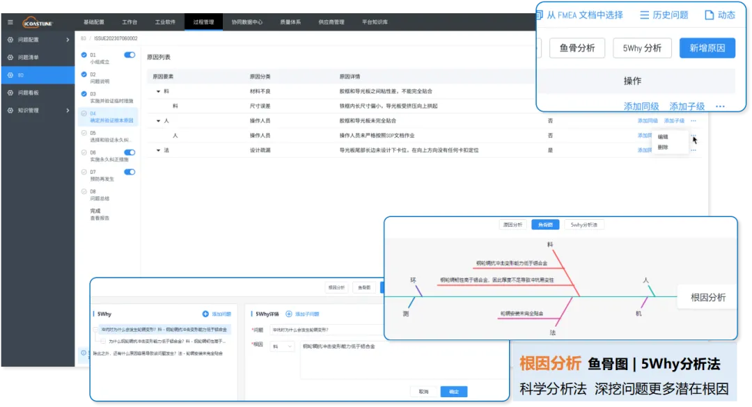 海岸线科技8D工具内嵌全面的模板/分析工具,科学分析 深挖问题更多潜在根因