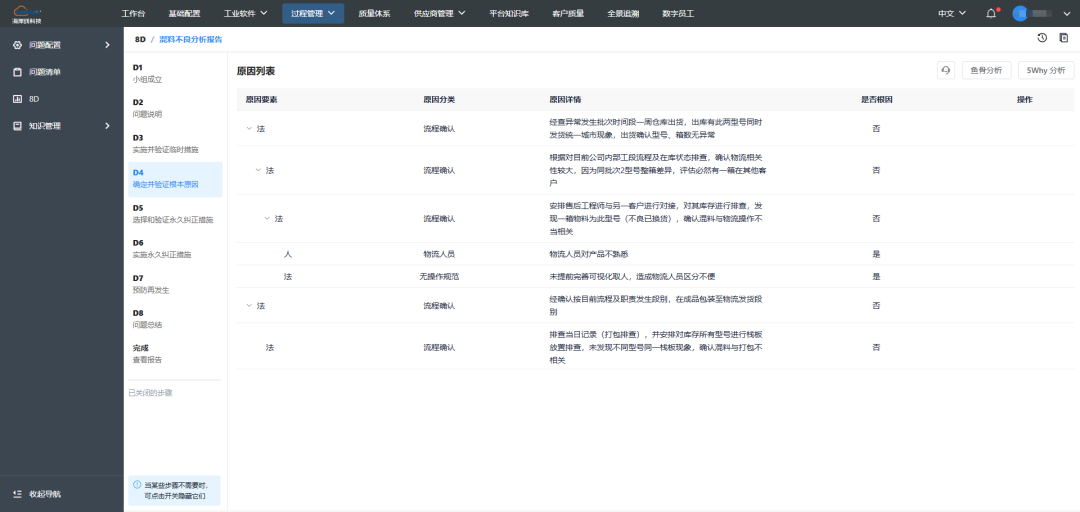 下面小编就用海岸线科技的8D工具,给大家试写一份混料不良的8D分析: