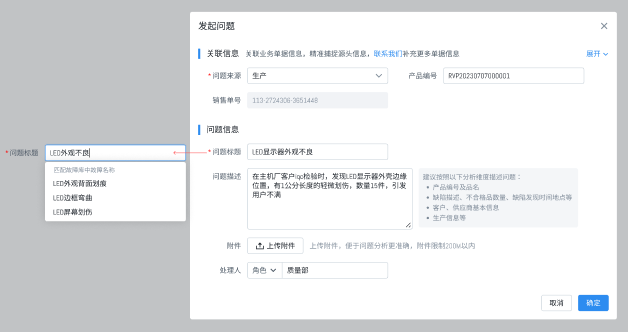 8D分析是质量人绕不过去的一个技能,善用工具可以帮大家节约编制时间,以海岸线科技问题管理/8D软件为例:当我们在进行问题分析时,软件会自动根据产品型号、料号、问题描述等关键词,自动在库中匹配。无论是原因的分析,还是长短期的对策,都能够主动推荐。
