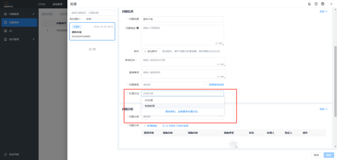 在对问题进行初步分析后,我们可以选择快速处理,或者8D分析等其他方式。