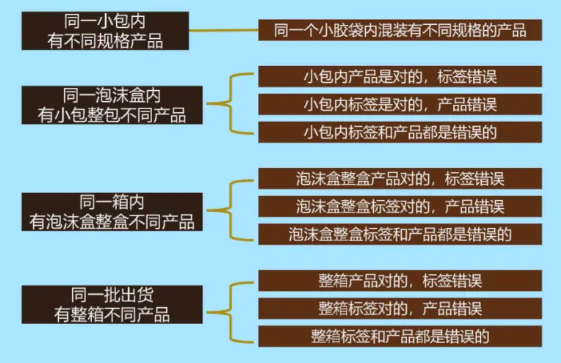 在制造业领域,混料现象可谓是一个影响产品质量与客户满意度的关键要素。混料问题呈现出多种形式,然而追根溯源,皆指向产品规格与标识的不相符。我们将其细致地划分为四大类、十小类,涵盖了从最小包装直至整批出货的各个环节。